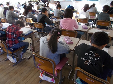また、冬休みあけにもかかわらず、朝の活動では、クラスで冬休みの思い出の発表をしたり、一生けん命漢字練習に取り組んだり、元気に今月の歌を合唱したり、真剣な、そして活気ある姿が見られました。