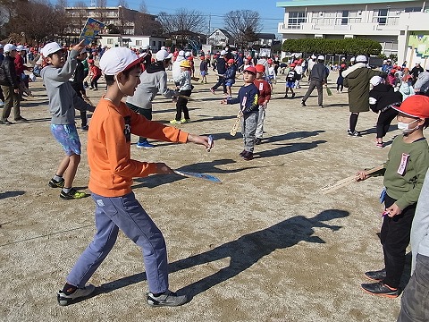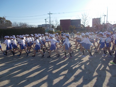 子どもたちは寒さにも負けず、クラスで長縄をがんばりました。