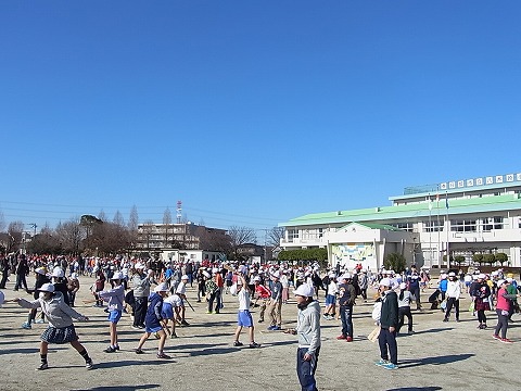 全校児童が校庭で一斉に跳ぶ縄跳びは壮観です。