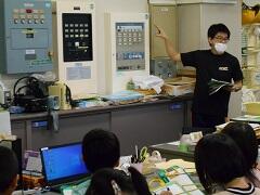 職員室では、火災時の非常放送設備や火災受信盤、防火扉の制御盤など、普段目にしない設備について担任の先生から説明を聞きました。さらに、天井にある火災報知器なども確認しました。