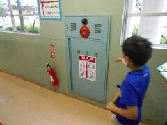 3年生が社会で「消防の仕事」について学習しています。今日は、学校にある火事に備える設備について調べていました。