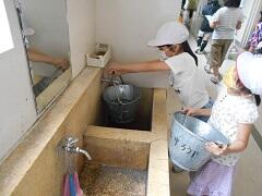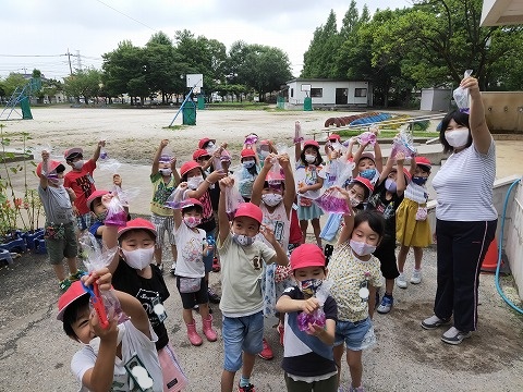 1年生が、育てたアサガオの花で、色水づくりを楽しみました。
