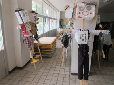 完成したかかしたちは、5年生が田植えをした田んぼやイトーヨーカドーに場所を移し、活躍する予定です。