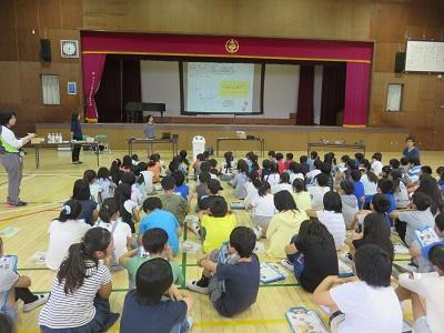 5年生が総合的な学習の時間の一環で、ジャパンビバレッジの方をお招きし「エコな暮らし方」について教えていただきました。