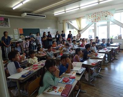 教科書の教材に関連する本を担任の先生が読み聞かせていました。みんな集中して聞いていました。