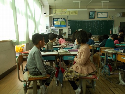 6年生がコンピュータ室で理科の授業をしていました。月の満ち欠けは、太陽と月と地球の位置関係で変わってくることを、先生が模型を使って分かりやすく説明していました。