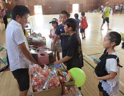 本日14:00~16:00まで本校体育館にて、谷原子供会による『夕涼み会』が開催されています。暑い中、子供会の役員さんたちが、子どもたちが楽しめる企画を考え実施してくれています。ヨーヨーすくい、輪投げ、スーパーボールすくい、三角くじ等々盛りだくさん。15:30からは、ビンゴゲームも予定されています。