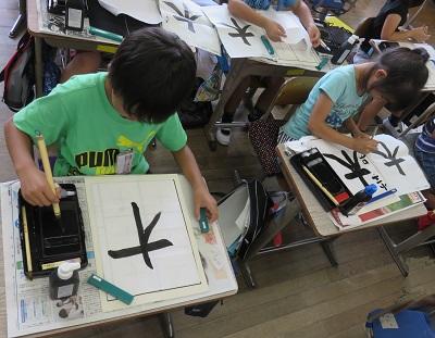 3年書写:左はらい、右はらい、頭では分かっているけど難しい・・・