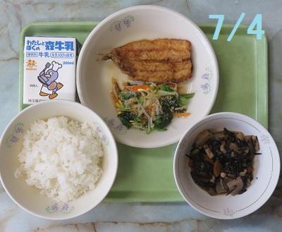 本日の献立は、ご飯、いわしのピリ辛揚げ、もやしの中華和え、磯煮、牛乳でした。暑いときには、ちょっとピリ辛が食欲をそそります。