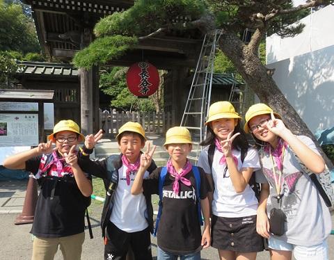 班行動が始まりました。高徳院をスタートして、行動班ごとに計画したコースを歩き、ゴールの由比ヶ浜海浜公園を目指します。