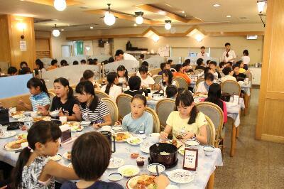 お風呂に入って汗を流し、各部屋で室長が中心となって過ごしています。