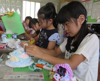 4年生の図工の授業風景です。自分独自の「種」から発想を広げて作品を作っていました。