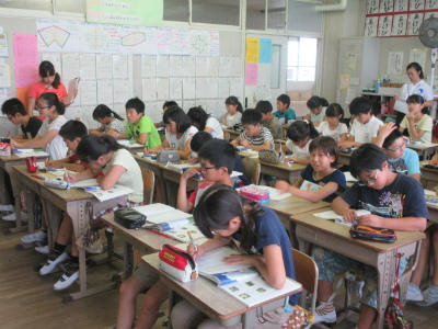 夏の俳句を作るという国語の授業です。子どもたちは、短時間で、たくさの句をひねり出していました。