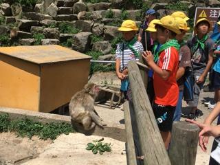 子どもたちは可愛い猿の赤ちゃんを見つけて喜んでます。