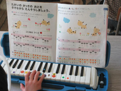 鍵盤ハーモニカで「子犬のマーチ」を演奏しています。