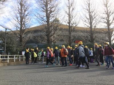 武道館前の駐車場に着きました。これから科学技術館の見学です。