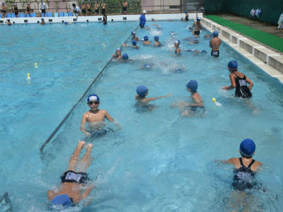 6年生の水泳検定では、クロールや平泳ぎ50mを制限時間内に泳ぎ切る「段」への挑戦が行われていました。