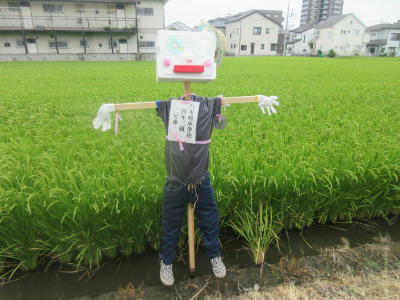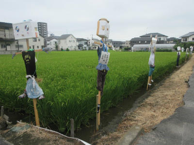 イトーヨーカドーに飾られていたかかしたちも、田んぼに戻ってきました。