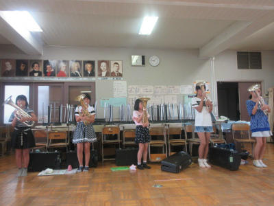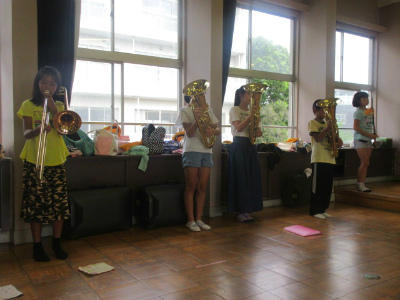 今日は第1回目ということで基本的なことを確認し、音楽室で「こんにちはトランペット」「RPG」などの曲を演奏しました。