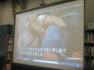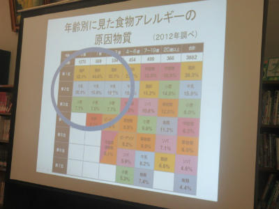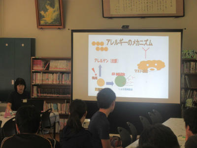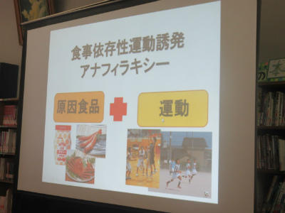 会場を図書室に移し、今度は食物アレルギーに関する研修です。