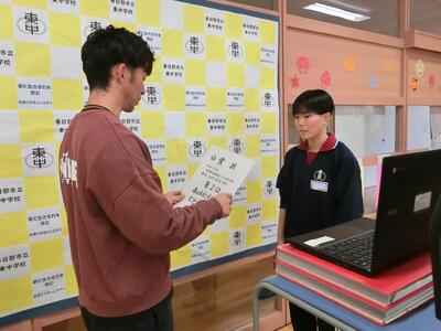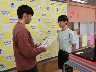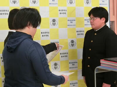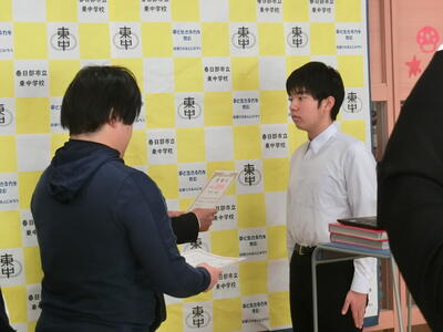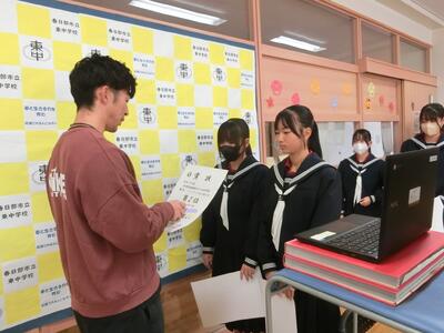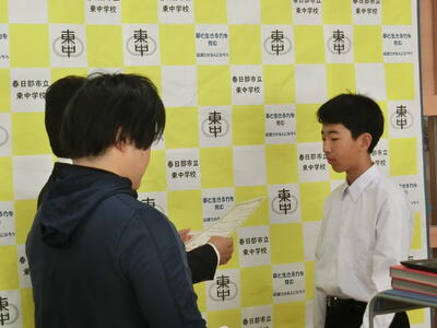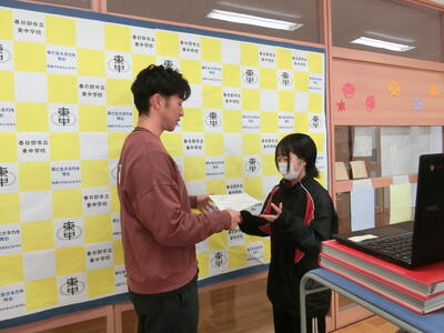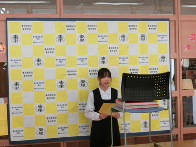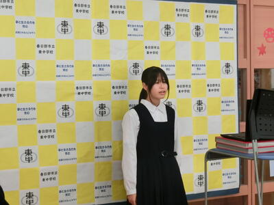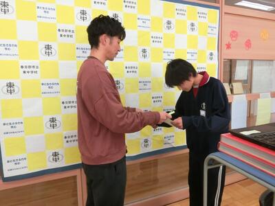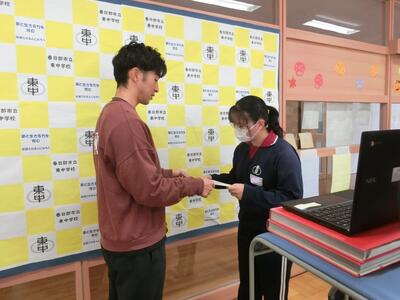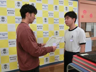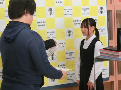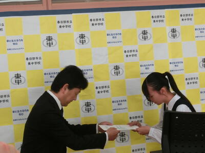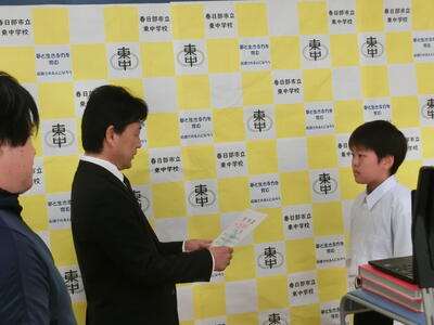 最後に春日部市市制20周年を記念したキャッチコピーの募集で3年生の生徒が表彰されました。
