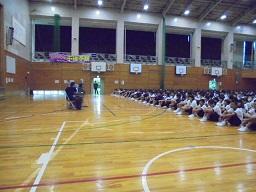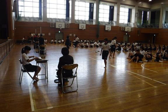 まず体育館に集合して、説明を聞いてから、体重と身長を体育館で、視覚は家庭科室、聴覚は保健室で行っています。