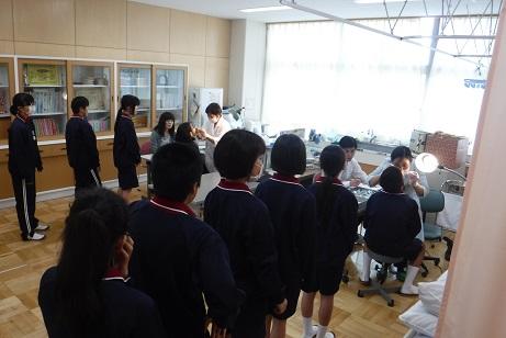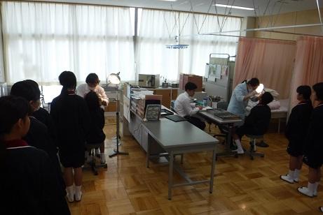 生徒たちは、みんな静かに保健室も前で待機して、自分の順番が来ると、静かに保健室で歯の健診を受けています。とても立派な姿勢です。その場の状況をわきまえた、すてきな姿勢です。うれしい姿勢です。