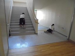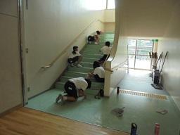 放課後の校内で、またまた、うれしい姿を発見しました。昨日に引き続き、吹奏楽部が階段の清掃をしてくれていました。昨日は玄関でしたが、今日は階段です。