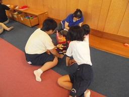 ライフデザイン部の1,2年生が、東中に近いエンゼルドーム(児童センター)のお手伝いに、夏休みが始まって以来通っています。今週の金曜日まで続きます。