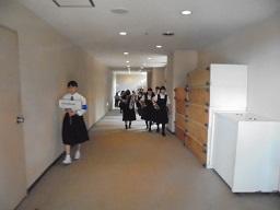 ホール入口に向かいます 演奏を終え、ほっとする吹奏楽部のみなさん