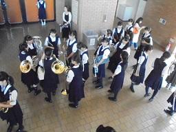 打楽器6名のアンサンブルと、管楽器3名のアンサンブルを行いました。たくさんの生徒が鑑賞しました。2階や3階から鑑賞する生徒もいました。何となく校内が温かな雰囲気に包まれました。