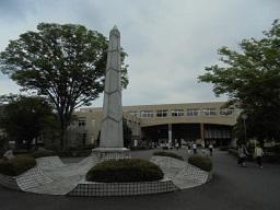 学校図書館も大きいです。 校門を入ると大きなオベリスクが目立ちます。