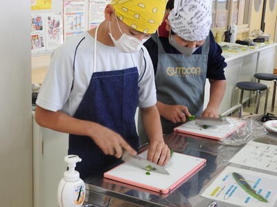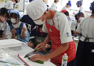 生徒「そうそう!拍子切りが、千切りとはやり方が違うから間違えないようにがんばろうね」