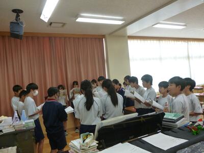 ハンドルベルなど様々な楽器を使って楽譜を見ながら練習します。