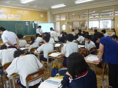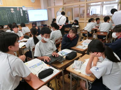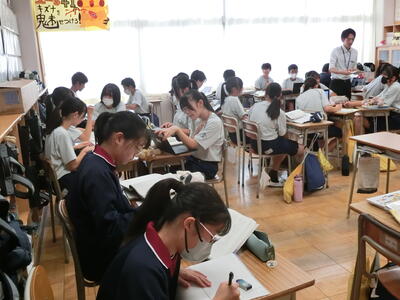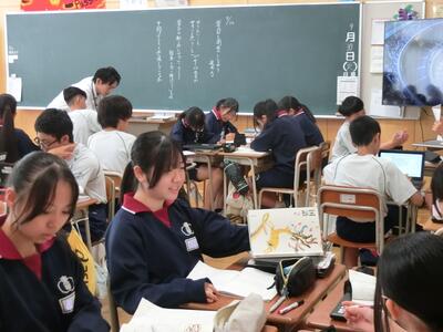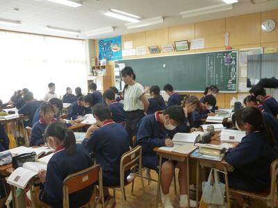 生徒「秋には秋の星が瞬いてのところ、歌うタイミングが遅いから手本に合わせよう!