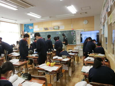 朝の会で心のアンケートと赤米農家さんの動画を鑑賞しました。