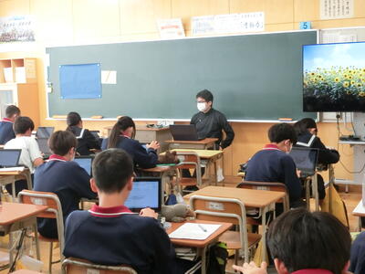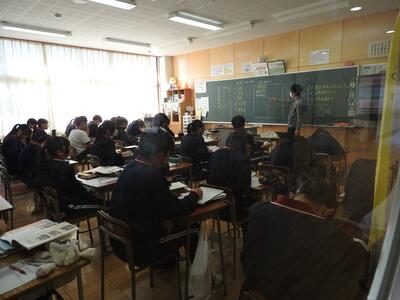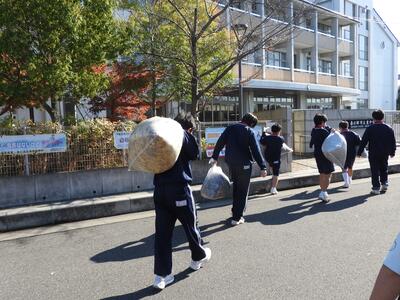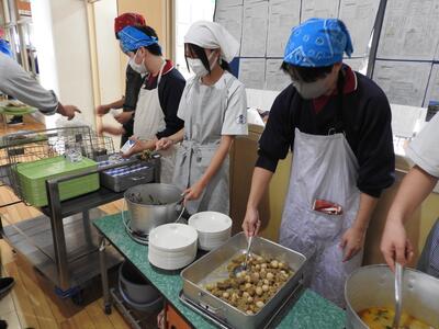 7・8・9組の生徒が栽培し、この秋に収穫したサツマイモが給食献立として提供されました。