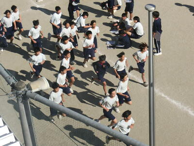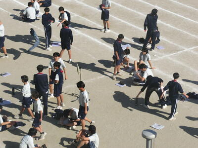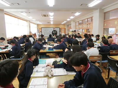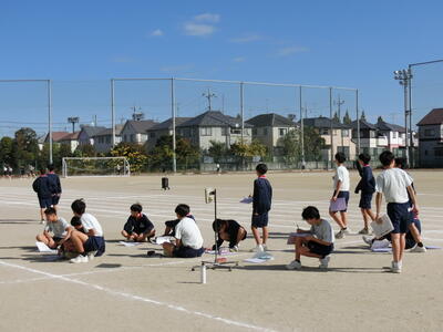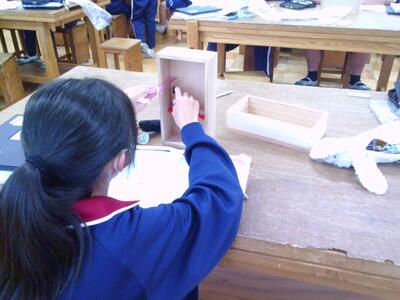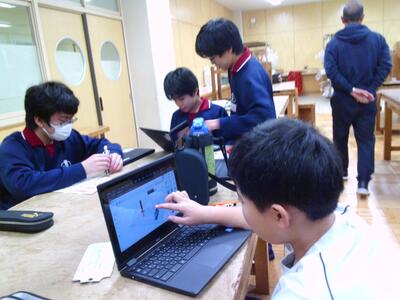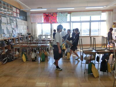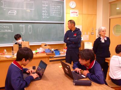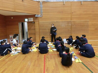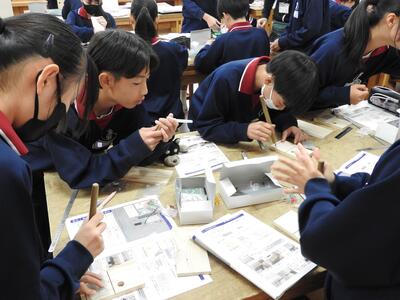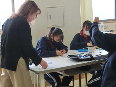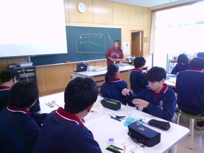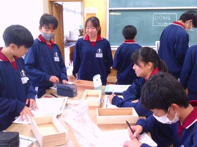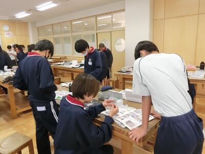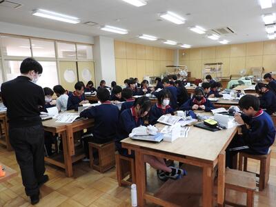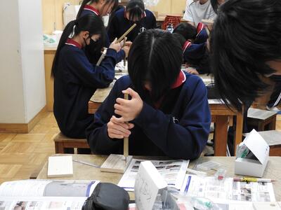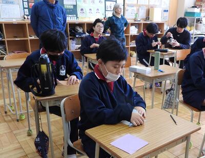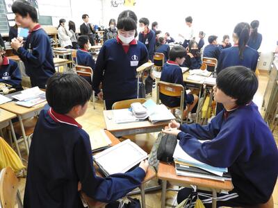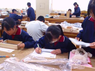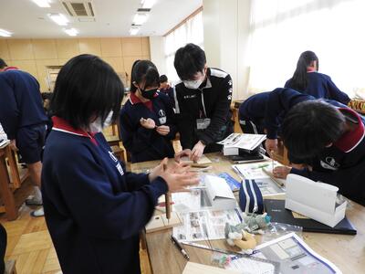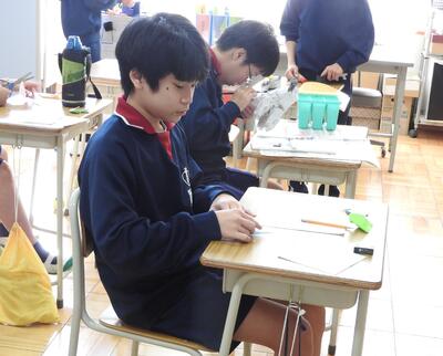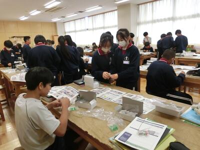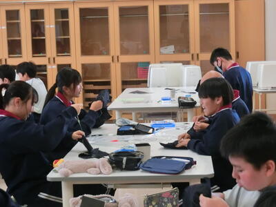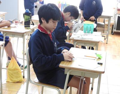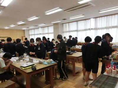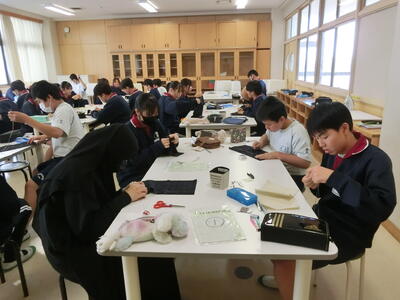 折り紙を折っている生徒と、動物を作っている生徒がいました。