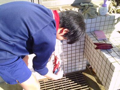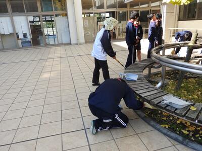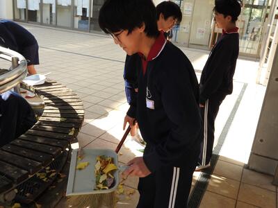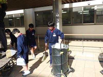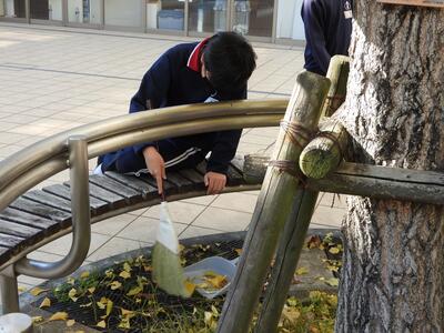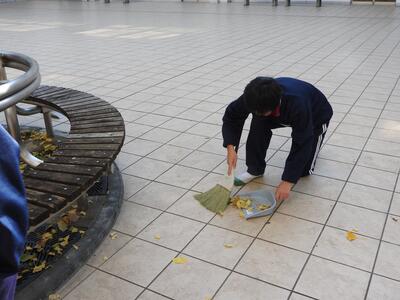 イチョウの落ち葉を集めてきれいに掃除をしました。