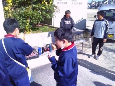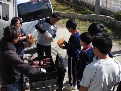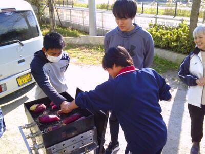 先日、生徒たちが収穫したサツマイモを焼き芋にしました。