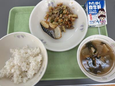 本日の献立は春日部産のさつまいもを使った甘辛炒めできんぴら風に仕上げた料理です。