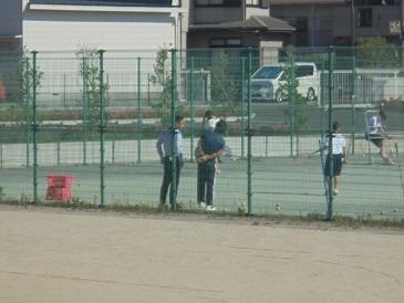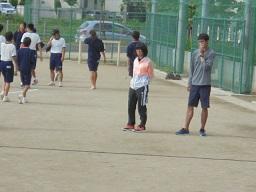 朝練習の様子です。今朝も生徒とともにいる先生の姿です。