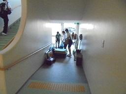 午後の時間帯を利用して、バレーボール部が廊下のワックスがけを行っています。