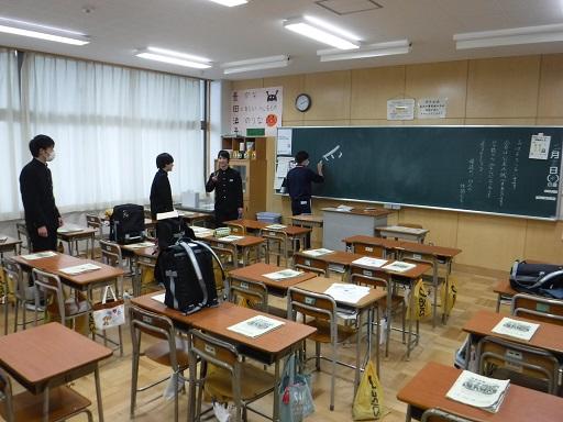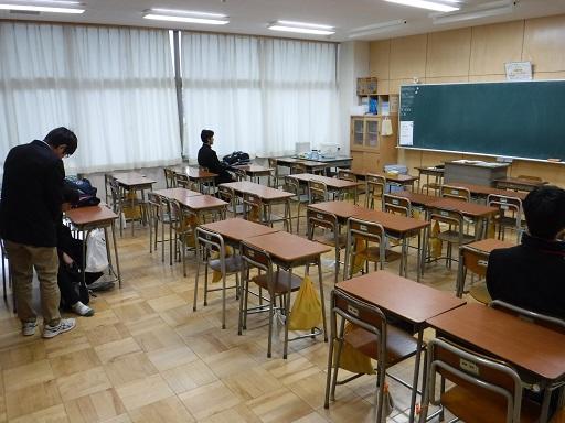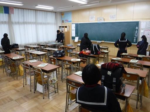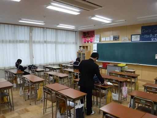 県公立高校学力検査・入試日の朝の3年生教室です。