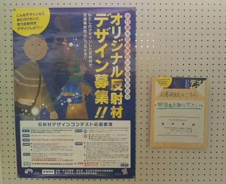 玄関前の掲示板に応募要項と応募用紙を掲示しています。歩行者を事故から守るために有効な反射材をデザインしてみませんか?どなたでも応募できます。自分と自分の大切な人、そして大切な人を思ってくれる人を守ります。是非、ご参加下さい。