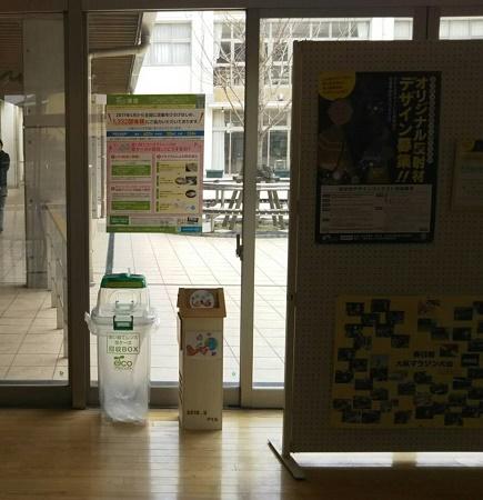 昨年9月にPTA体育厚生委員会の皆さんが設置したベルマーク回収箱が昇降口の掲示板に置かれています。