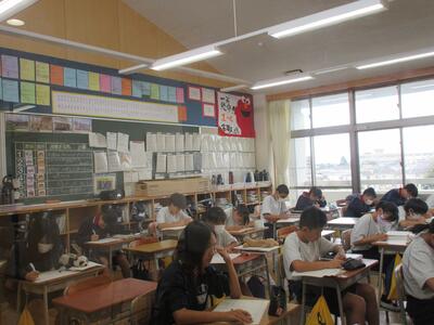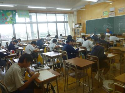今日も新人戦2日目のため、各クラス数学のプリントなどの自主学習が行われています。