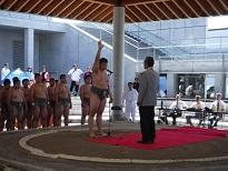 左:選手宣誓です。 右は本校のゼッケンをつけた本校生徒のまわしを撮影しました。