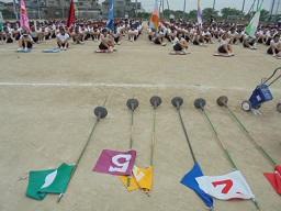 女子は、「ヨサコイ ソーラン」。男子は、組体操です。