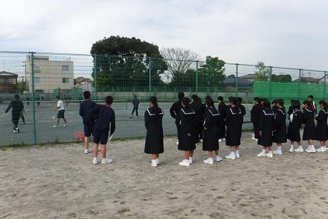 ソフトテニス部の練習風景の見学です。コートの砂の色が違います。
